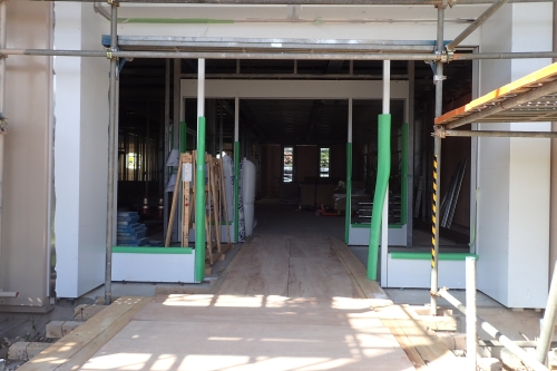 内装は先月と比べると柱(鉄筋)がいっぱい立ってきました。