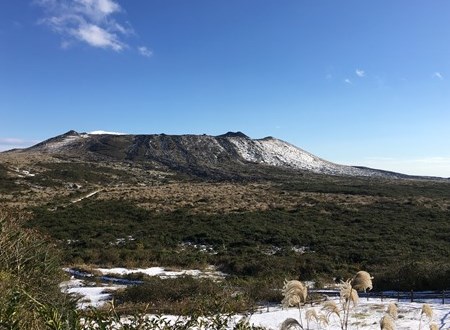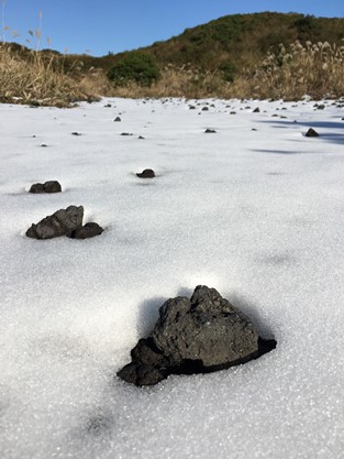 雪はめったに積もらない伊豆大島でも、三原山山頂付近で雪が積もりました!