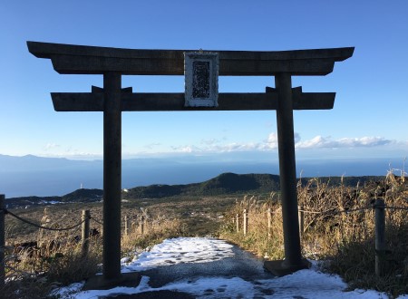 富士山もきれいに見たので、三原山内輪山にある三原神社から、鳥居の