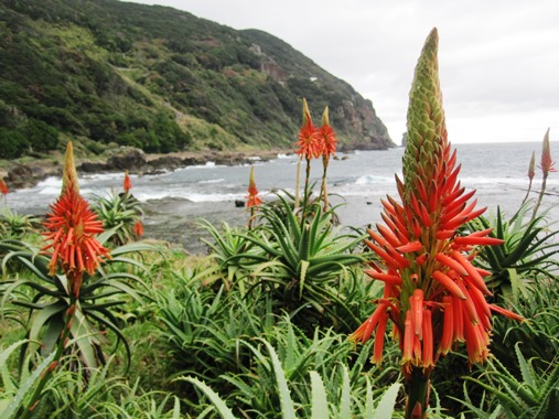 こちらのとんがり頭の花は、アロエです。12月~1月になるとアロエの花が見頃になります。