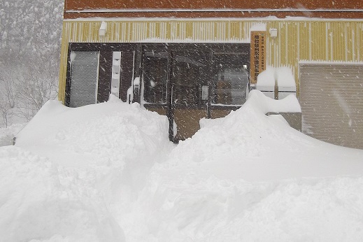 これでは除雪しないと事務所に入ることができなさそうですね。