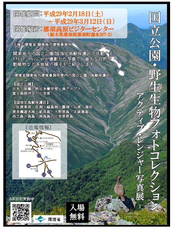 1年間関東地方環境事務所管内を巡回してきた平成28年度アクティブレンジャー写真展も、那須会場での開催が最後となります。
