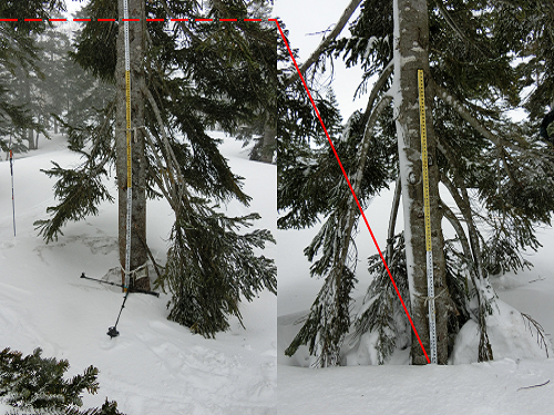 写真左が去年の様子、右が今年の様子です。(赤いラインが同じ位置!)