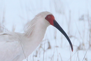 トキの顔の違い、それは暑い時期には赤い裸出部分が「広く」、寒い時期には「狭く」なります。