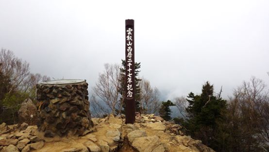 (5/24撮影:雲取山頂に建てられた2017年記念碑)