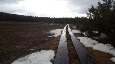 かろうじて出ている木道はどこも非常に滑りやすいので、あせらずゆっくり歩きましょう。