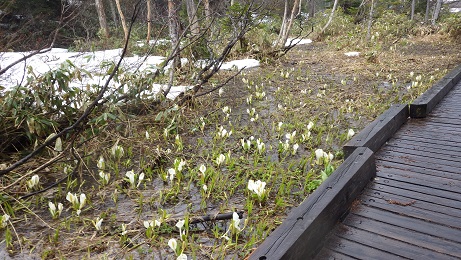 脇にはミズバショウやショウジョウバカマなどが咲き始め、もう少し暖かくなってきたら見頃を迎えそうです。
