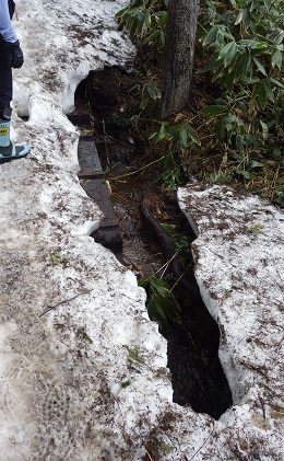 見晴に行く間にいくつか沢がありますが、どこもまだ残雪しており渡る際はとても注意が必要です。