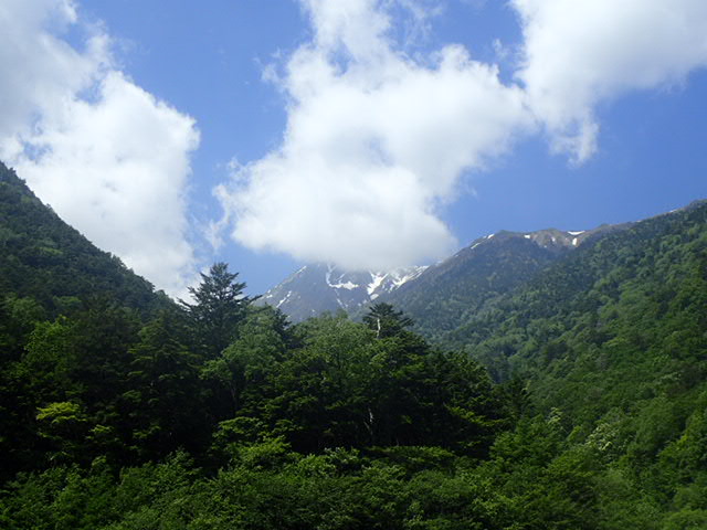 (広河原から見た雲がかかった北岳 撮影日:2017.6.24)