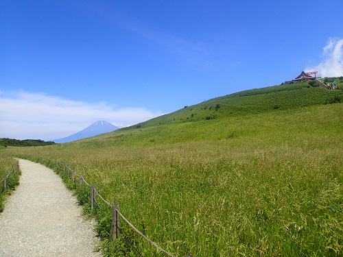 上は風衝地のためか高い樹木は育たず広い草原になっています。