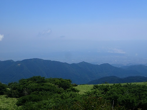 今回はぼんやりとしか見えませんでしたが、視界が良ければ東の方角に相模湾や東京スカイツリーも見られます。左に小さく映っている「大」の字は、明星ヶ岳の大文字です。毎年8月16日に大文字焼きが行われます。