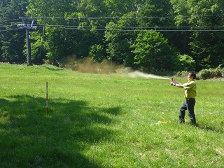講義のあとは、クマに出くわして危機的状況になってしまったときの対処として、クマスプレーの噴射を実践しました。