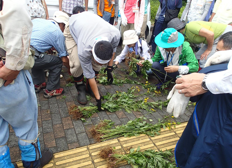 【特定外来生物:オオハンゴンソウ駆除実習の様子】