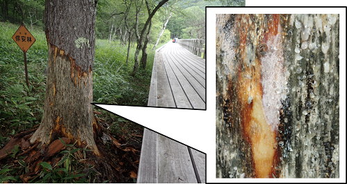 8月1日に行った巡視の際には、頑張って樹脂を出し、怪我の修復を行っている様子が見られました。
