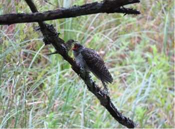 親はアオジ、親よりもひなの方が大きいという少し変な光景ですが、カッコウは托卵をする種なのでこのようなこともあります。