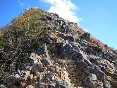コースは唐沢小屋を通りますが、小屋を過ぎると広いガレ場のトラバースが有り慎重に歩きます。
