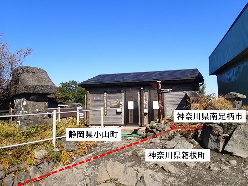 実は金時山山頂は2県1市2町の境になっており、トイレも神奈川県と静岡県にまたがっています。