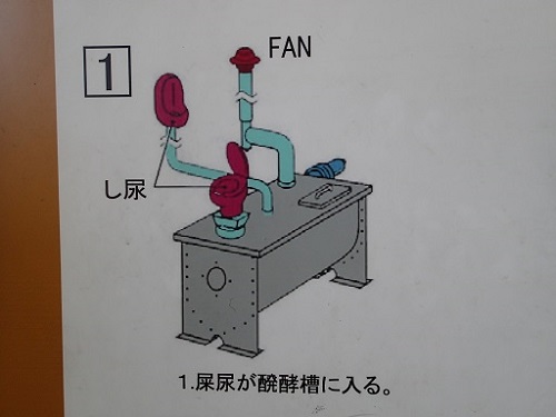 1.出されたし尿がトイレの下に設置してある発酵槽に入ります。