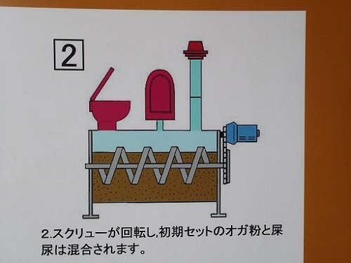 このトイレはバイオ式で、し尿は全てその場で処理されています。