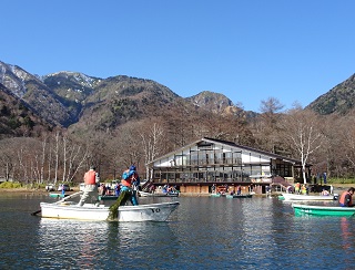 除去は、ボートから碇を投げ込み、それに引っかかった海底のコカナダモを引き上げるという方法で、多くのボートが湖に繰り出しました。水深が浅く水が透き通った湯ノ湖では底にコカナダモがなびいている様子が見え、それをめがけて碇を投げます。