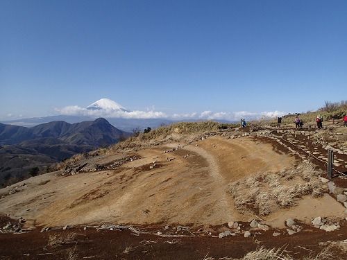 山頂付近は開けており、箱根の大涌谷なども一望できます。また東側では相模湾も眺められます。