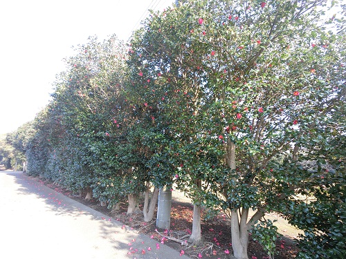 現在でもツバキは集落のいたるところに防風林として植えられています。