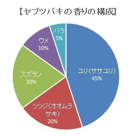 香り成分の科学的分析によって明らかにされたヤブツバキの香り構成は以下の円グラフの通りです。