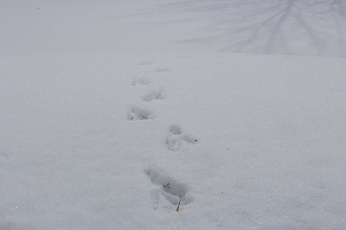また雪が降った時の醍醐味の一つ、「動物のあしあと探し」を今年も実施しました。今年は野鳥の足跡が多く、雪の中キラキラと光っていましたよ。