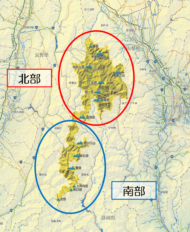 南アルプス国立公園は、三伏峠を境として北部と南部に分けられます。