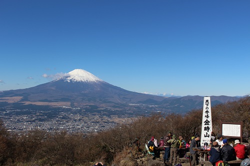 神奈川県南足柄市・箱根町・静岡県小山町の境にある金時山(1,212m)には、年間10万人以上もの人たちが訪れ、2軒の茶屋がある山頂はいつも沢山の人で賑わっています。