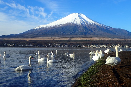 山中湖などから見るごつごつとした力強い富士山とは雰囲気が異なります。
