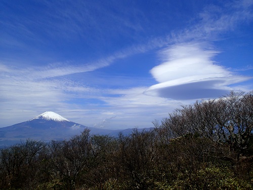 金時山から見た富士山と吊るし雲(発生すると雨になる確率が高いと言われている)