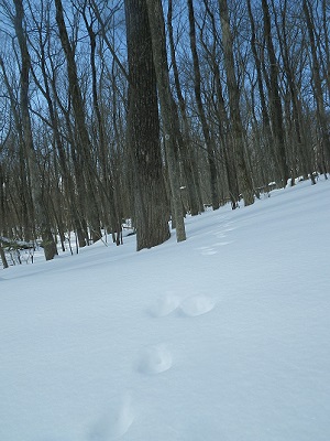 (巡視中に見つけたノウサギの足跡)