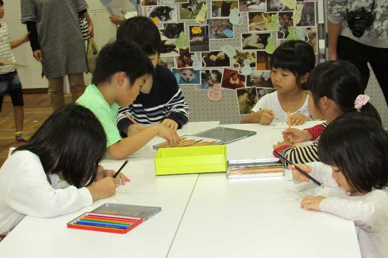 子どもたちはお絵かきコーナーで思い思いのネコを描いてくれました。