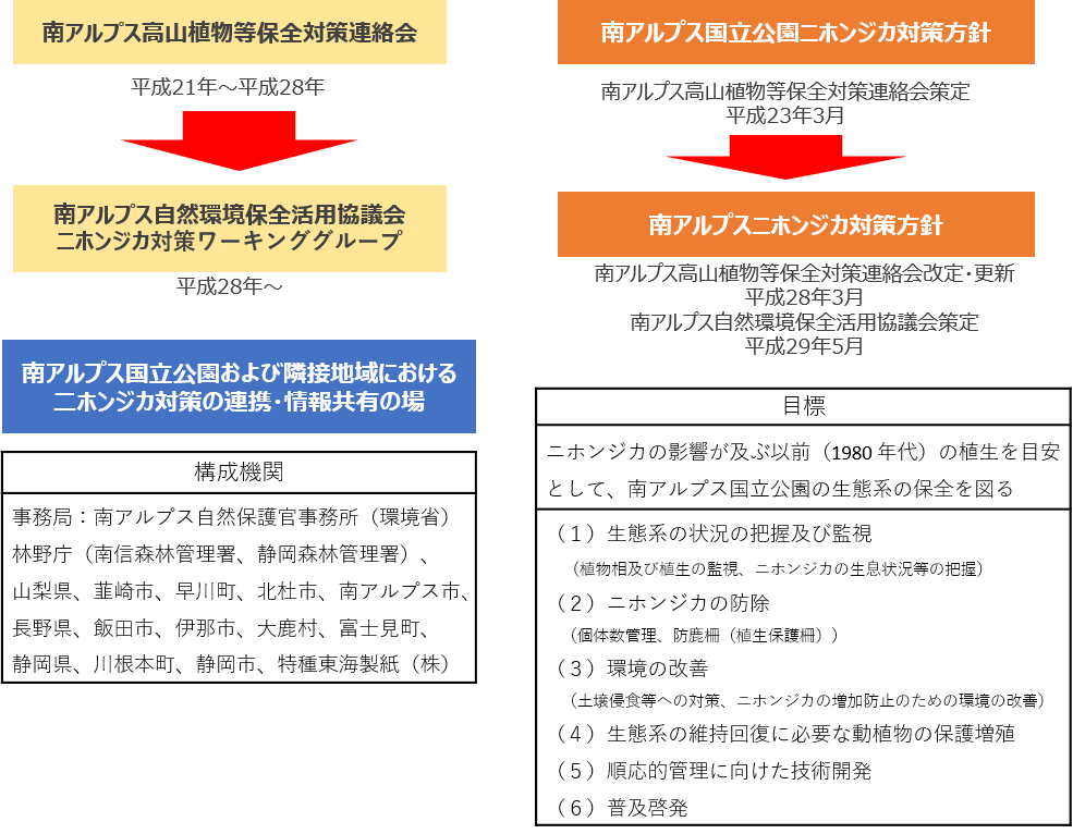 (ニホンジカ対策ワーキンググループ設置及び南アルプスニホンジカ対策方針策定の経緯)