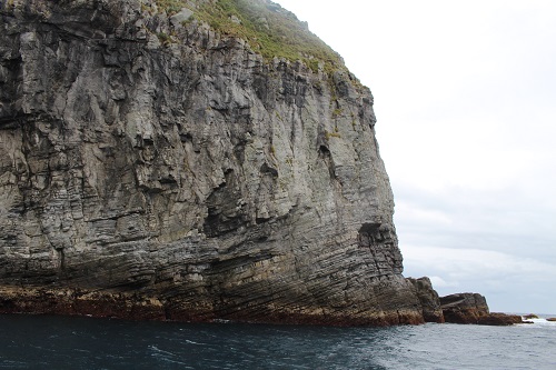 船を寄せてみると岩壁から鳴き声は聞こえるものの、どこに巣があるのか目視では確認できませんでした。(もしかしたらこの写真にもカンムリウミスズメが写り込んでいるかも?)