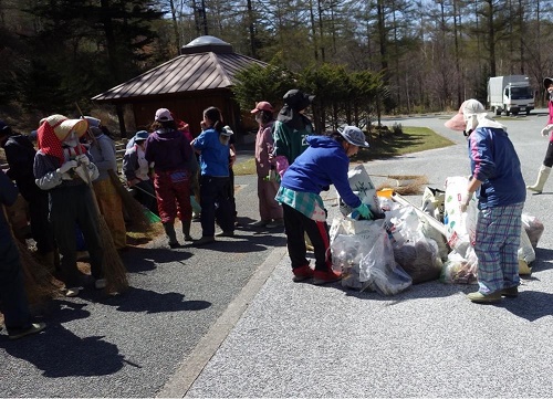 先月26日に、長野県川上村にある毛木場駐車場で、梓山林野保護組合の皆さんと清掃作業を行いました。