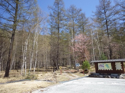 毛木場は標高1433mと高所にあるため、例年だと4月はまだ冬景色ですが、清掃当日は既にサクラの花とカラマツの新緑が見頃でした。