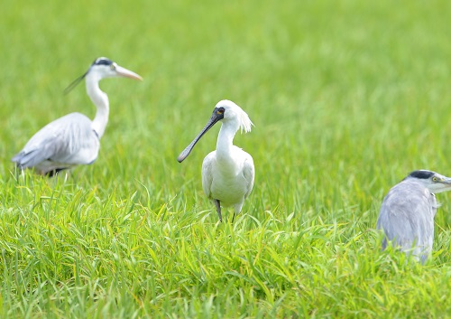 トキ科の希少種クロツラヘラサギ(佐渡島 佐渡自然保護官事務所)