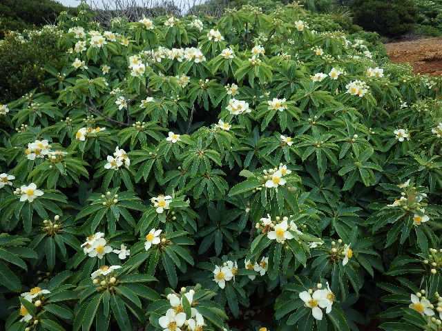 上)ムニンヒメツバキ 下)父島境浦海岸