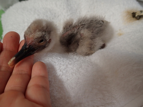 <親が育てない等の理由で人工育雛されているトキのヒナ>