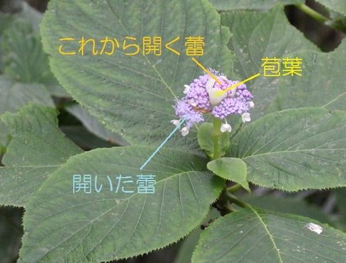 一般的な花をイメージすると、何枚かの苞葉が花を一包みにしているのかと思ってしまいますが、なんとこのラセイタタマアジサイ、それぞれの苞葉の間に蕾を持っているようです。