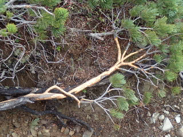 △樹皮が食べられてしまったハイマツ