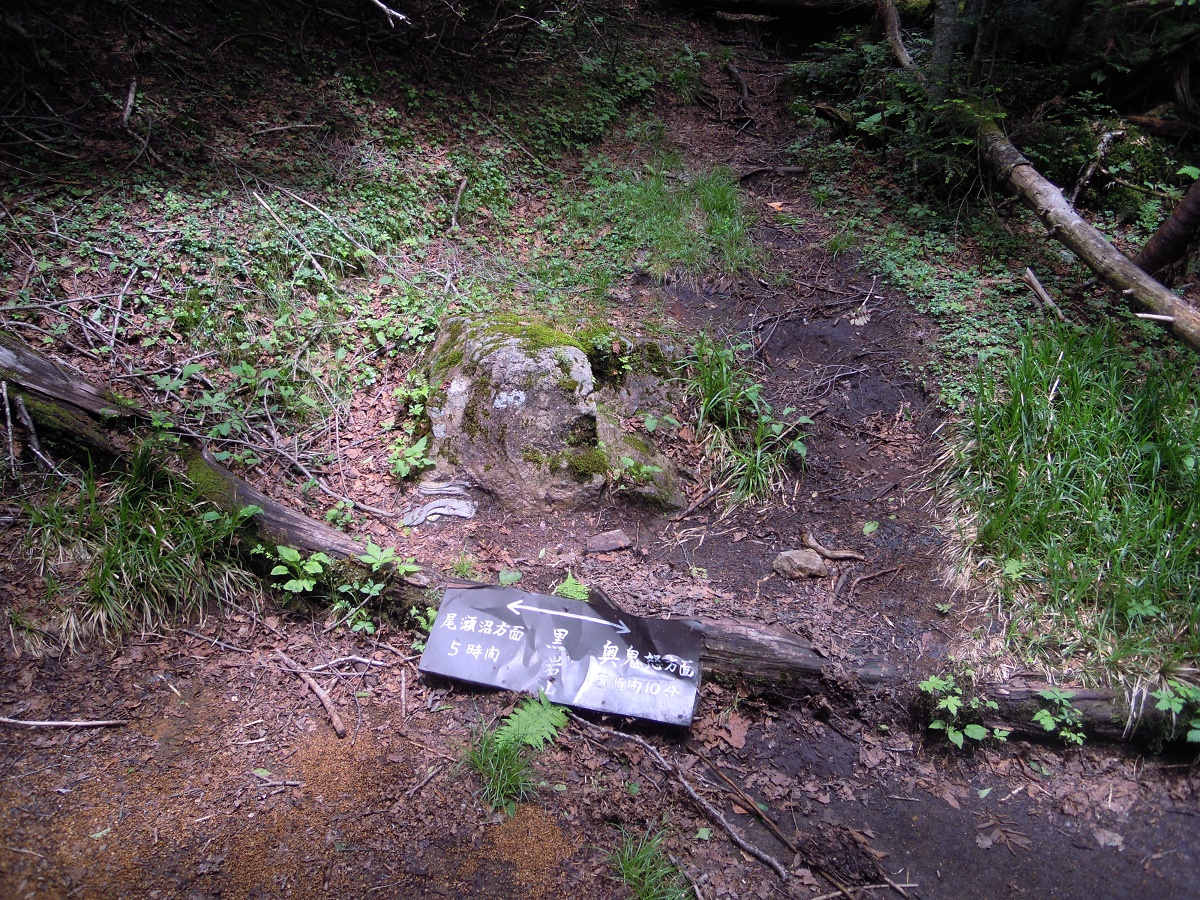 尾瀬沼を出て5時間を越えるころ黒岩山への分岐につきます。黒岩山は福島・群馬・栃木3県の県境に位置する山で、尾瀬と日光国立公園の境界にもなる山です。