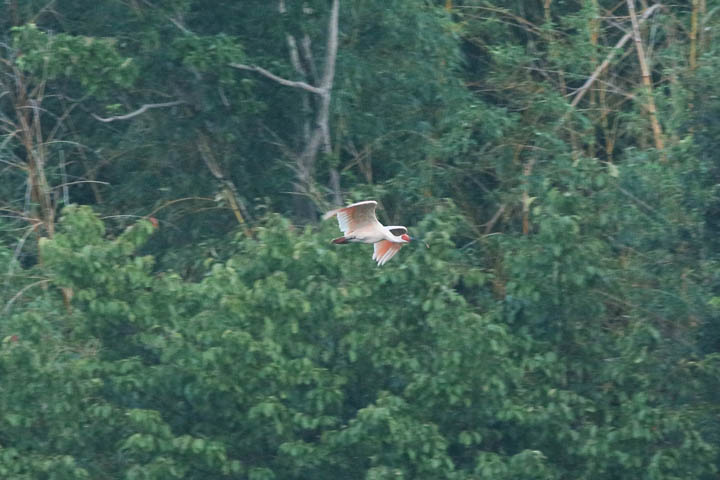 林の中から「コッココッ」、「ココッ」と話声が聞こえてきます。トキはおしゃべりな鳥で状況によって様々な鳴き声を使い分けますが、この時の声は一緒に出るタイミングを相談している様に聞こえます。その後に「クワーッ、クワーッ」、「クワークワーッ」と猫とニワトリとカラスを混ぜ合わせたような声で鳴きながらねぐら出していきます。臆病なわりにはとっても目立つ行動をする所が面白い鳥だなと思います。