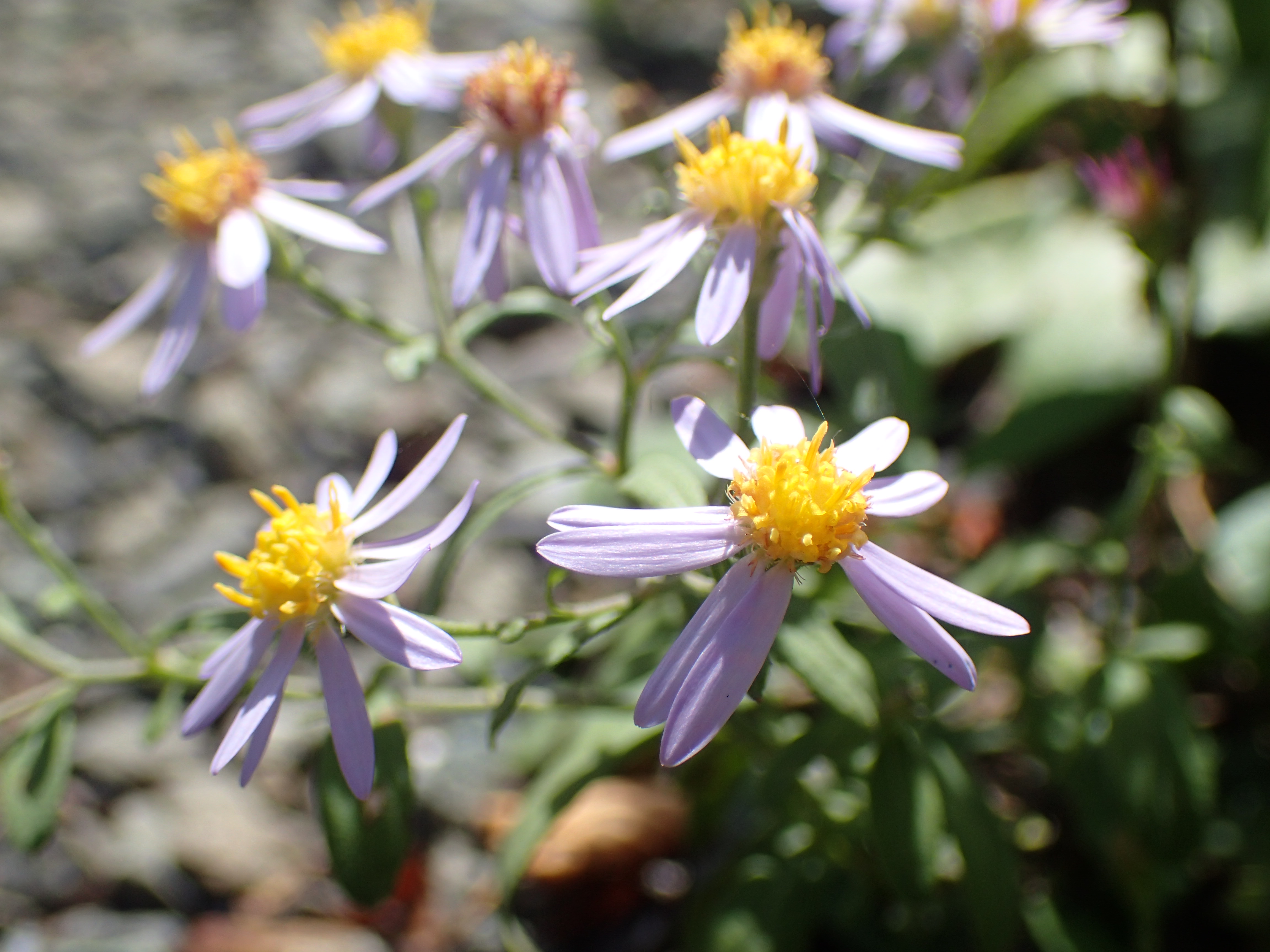 秋頃に花をつけるこのお花は【ノコンギク】です。高標高域に咲くのではなく、広河原や林道など比較的低標高域に咲きます。この可愛らしい紫色の花を見つけると秋を感じます。広河原では、あちらこちらで咲いているので探してみてください。