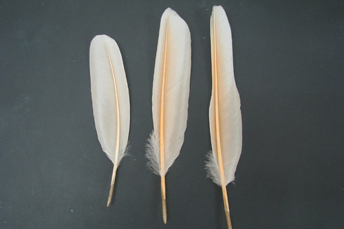 運がよければ田んぼのあぜや道路際に落ちている事があります。休日に神社の参道で羽毛が落ちているのを見つけたこともありました。羽毛はほとんど白色をしていますが、よく見ると羽軸がとき色になっています。トキの羽をみつけたら持ち帰ることは構いません。水道水などで洗って、日陰で乾かして保管しましょう。ただし、トキは希少野生動植物種として「種の保存法」で守られているため他の人に売ることや、タダでもあげる事は法律で禁止されています。おくりものは大切に持っていましょう。