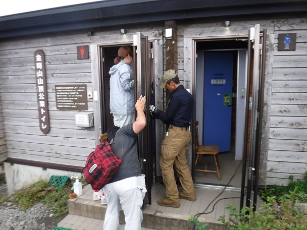 金時山山頂トイレは、山小屋の協力を得て関係者が連携して維持管理を行っています。
