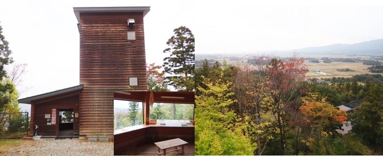 ▲観察棟と観察棟から望める国中平野