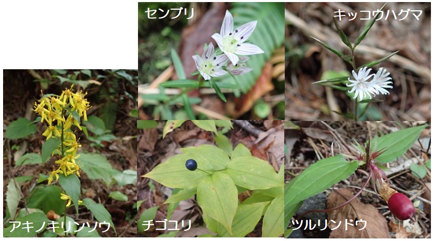 運が良ければ野生下のトキが飛翔する様子に出会えるかもしれません。観察棟へは駐車場から5分程度山道を歩いて向かいますが、右に左に目を向けると落ち葉に隠れた秋の花を見つけることができます。日本海側はこれから雨が多い日になりますが、雨と上手につきあって短い秋を楽しみましょう。